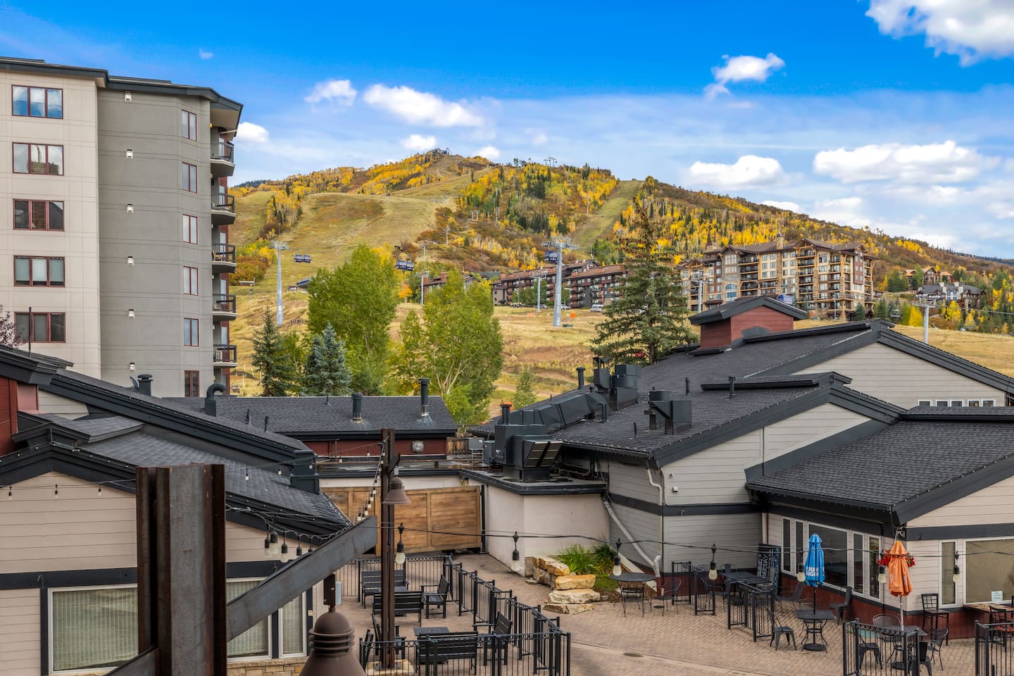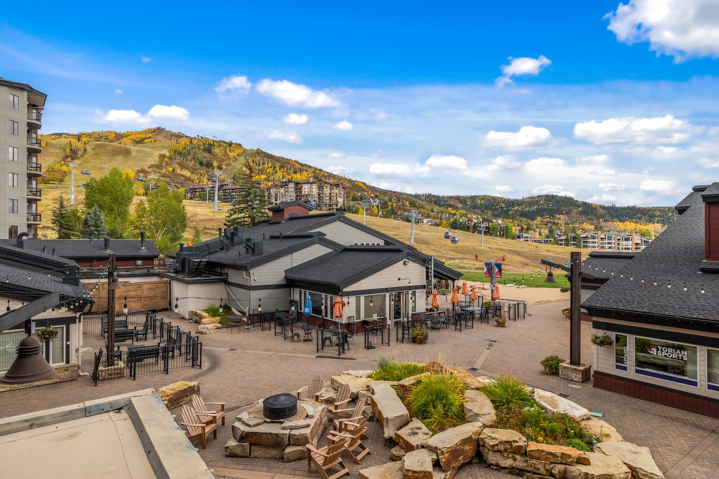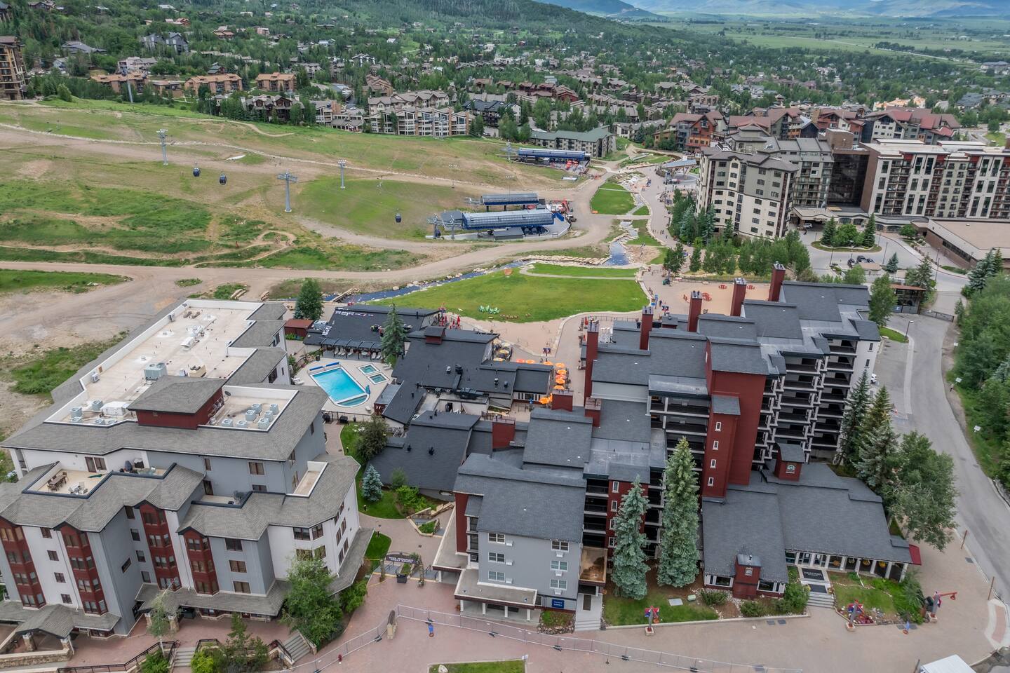 Summer: Enjoy the best of Steamboat: fresh mountain air, hiking, and biking are OPEN! Steamboat's cool nights, sunny days, and low humidity make it the perfect summer or fall getaway destination to escape the summer heat and enjoy activities like hiking, biking, rafting, or fly fishing—just steps from the creek for kids to play. Ski Season: The perfect spot to come and go easily. The gondolas and lifts are right outside your door, a short walk down the hill. Come in for lunch or work out in the new fitness center just downstairs. The condo features a ski locker and a gas fireplace to keep cozy. Also included in the unit -- new washer/dryer, fireplace, kitchen appliances, carpet, and bathroom upgrades, all to be completed within the year. There is a small balcony offering great views of the fire pit and ski base area. And to round it out, there is WIFI, Roku, three new smart TVs, underground parking, a heated pool, multiple hot tubs, and fitness centers with cardio and weightlifting machines. Elevators are not necessary - this condo is located just above the plaza, offering easy same-floor access from the street and shuttle. While you can always use the elevators, there's no need to wait; a short walk down one flight of stairs to the ski plaza and restaurants, or two flights to the garage. Or watch all the action from your deck overlooking the Torian plaza firepit and Paramount. We love how you can still stay in the mix safely and how easy it is to get in and out, unlike other large complexes.