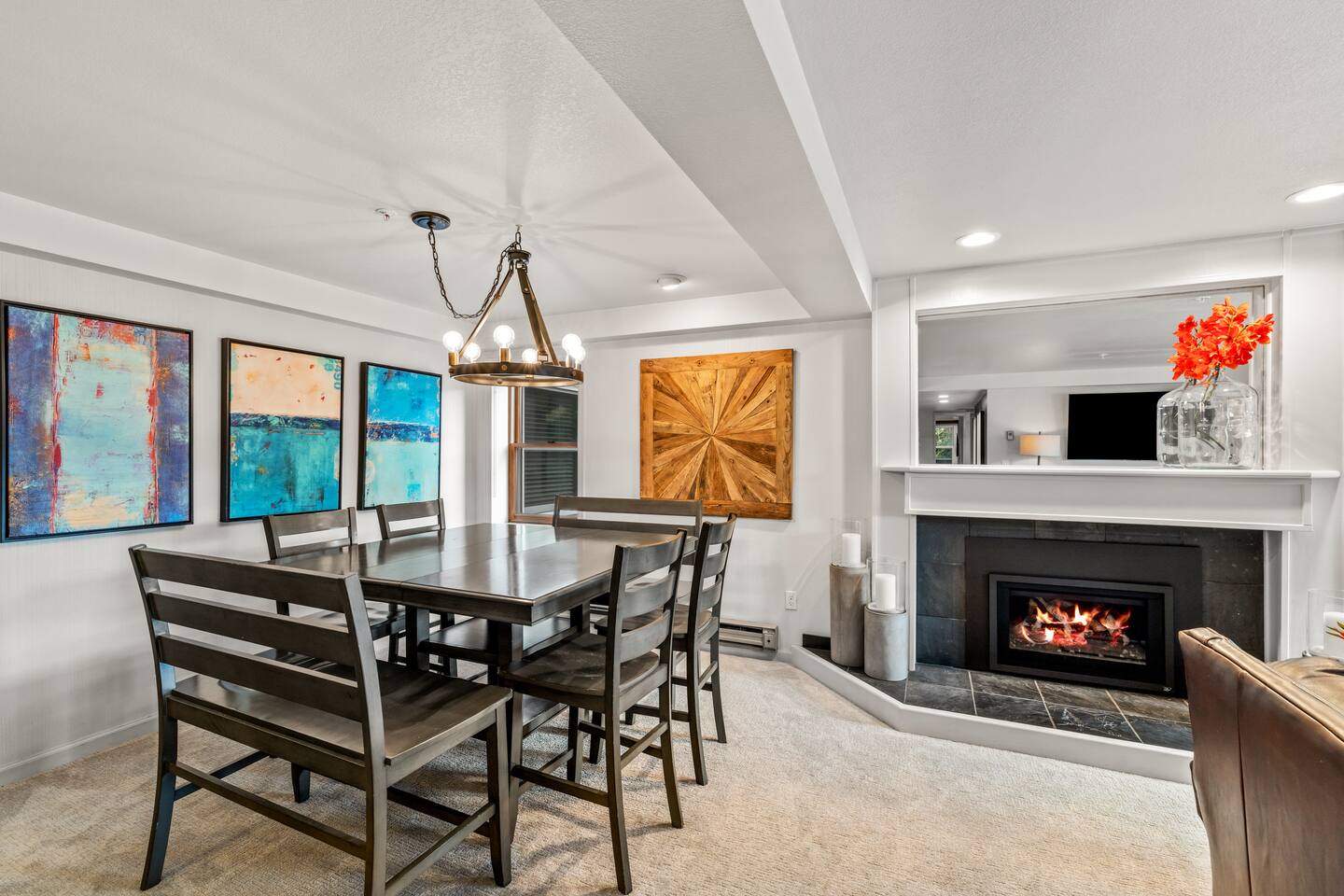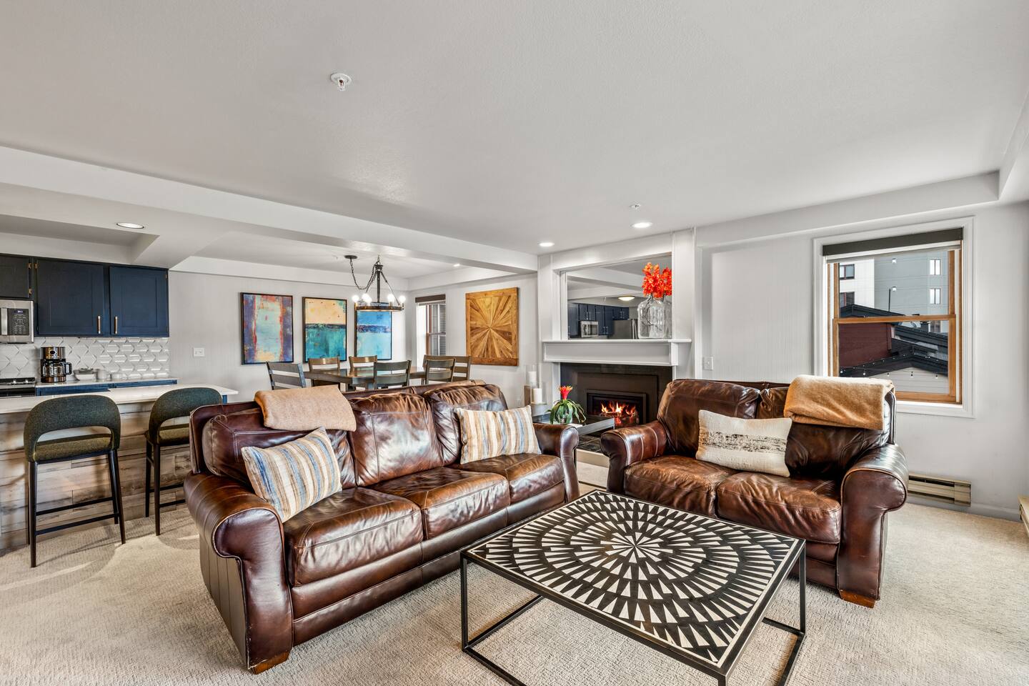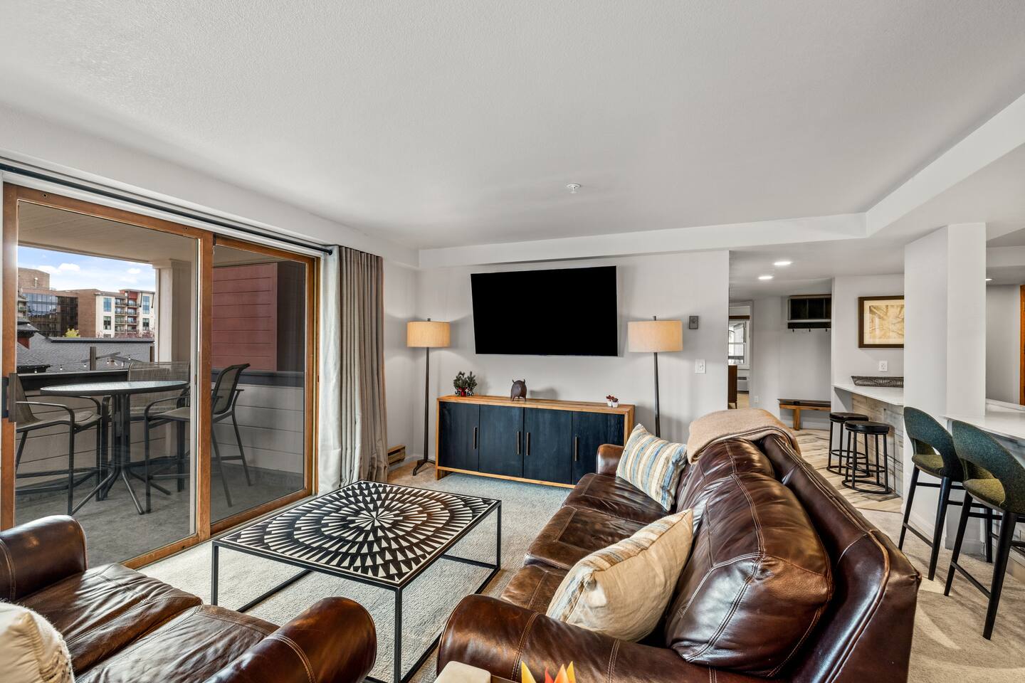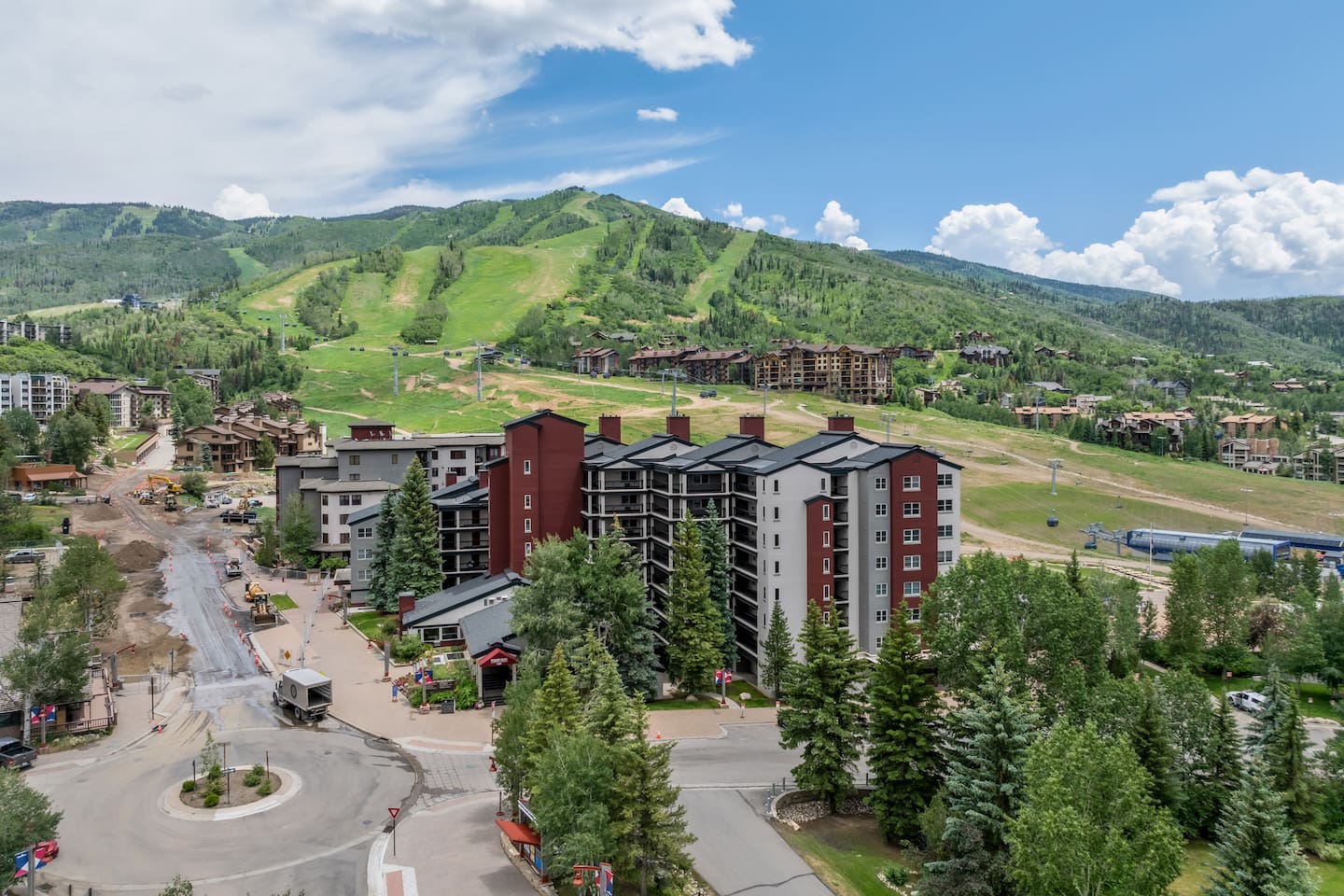 Summer: Enjoy the best of Steamboat: fresh mountain air, hiking, and biking are OPEN! Steamboat's cool nights, sunny days, and low humidity make it the perfect summer or fall getaway destination to escape the summer heat and enjoy activities like hiking, biking, rafting, or fly fishing—just steps from the creek for kids to play. Ski Season: The perfect spot to come and go easily. The gondolas and lifts are right outside your door, a short walk down the hill. Come in for lunch or work out in the new fitness center just downstairs. The condo features a ski locker and a gas fireplace to keep cozy. Also included in the unit -- new washer/dryer, fireplace, kitchen appliances, carpet, and bathroom upgrades, all to be completed within the year. There is a small balcony offering great views of the fire pit and ski base area. And to round it out, there is WIFI, Roku, three new smart TVs, underground parking, a heated pool, multiple hot tubs, and fitness centers with cardio and weightlifting machines. Elevators are not necessary - this condo is located just above the plaza, offering easy same-floor access from the street and shuttle. While you can always use the elevators, there's no need to wait; a short walk down one flight of stairs to the ski plaza and restaurants, or two flights to the garage. Or watch all the action from your deck overlooking the Torian plaza firepit and Paramount. We love how you can still stay in the mix safely and how easy it is to get in and out, unlike other large complexes.